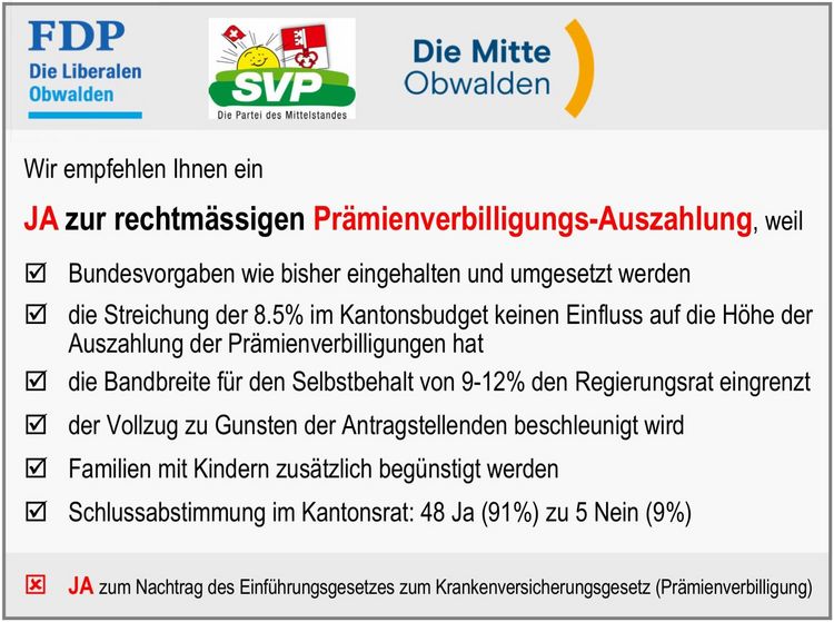JA zur rechtmässigen Prämienverbilligungs-Auszahlung, weil